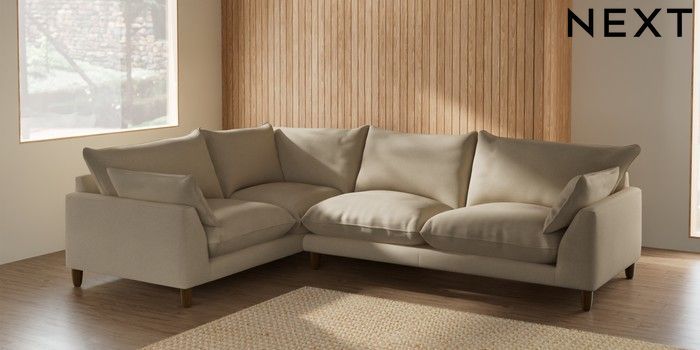 7.2.10 Noa Deep Relaxed Sit Large Corner Sofa - Left Hand Natural Mix Light Natural High Leg - Mid | Made Click here to use our website with more accessibility support, for example screen readers