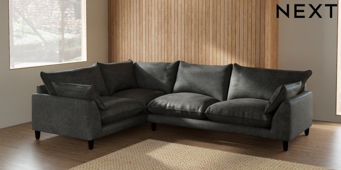 7.2.10 Noa Deep Relaxed Sit Large Corner Sofa - Left Hand Plush Chenille Dark Grey High Leg - Dark | Made Click here to use our website with more accessibility support, for example screen readers