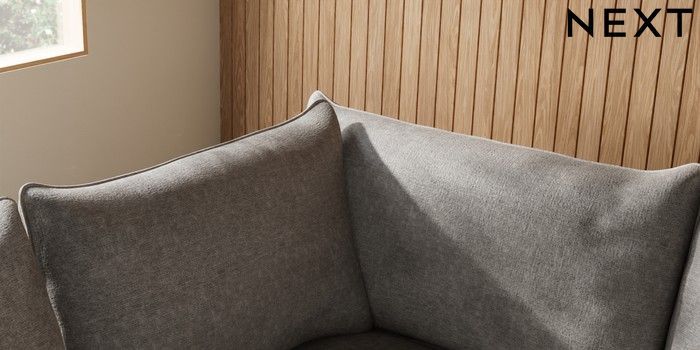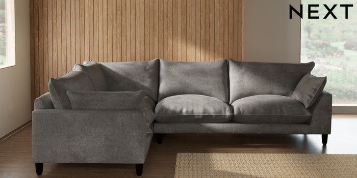 7.2.10 Noa Deep Relaxed Sit Large Corner Sofa - Left Hand Plush Chenille Light Grey High Leg - Dark | Made Click here to use our website with more accessibility support, for example screen readers