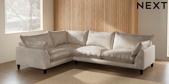 7.2.10 Noa Deep Relaxed Sit Large Corner Sofa - Left Hand Plush Chenille Oyster High Leg - Dark | Made Click here to use our website with more accessibility support, for example screen readers