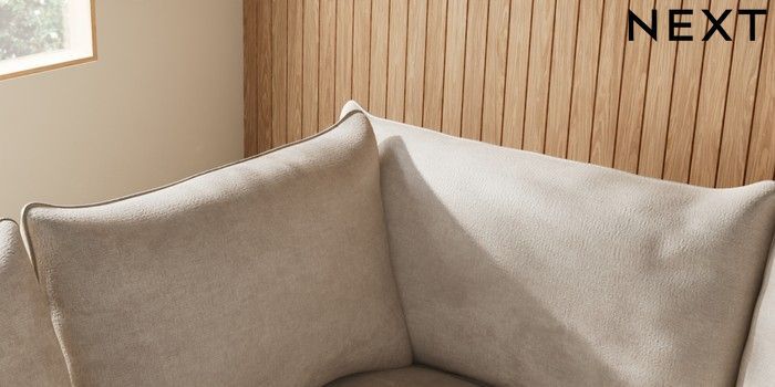 7.2.10 Noa Deep Relaxed Sit Large Corner Sofa - Left Hand Plush Chenille Oyster High Leg - Light | Made Click here to use our website with more accessibility support, for example screen readers