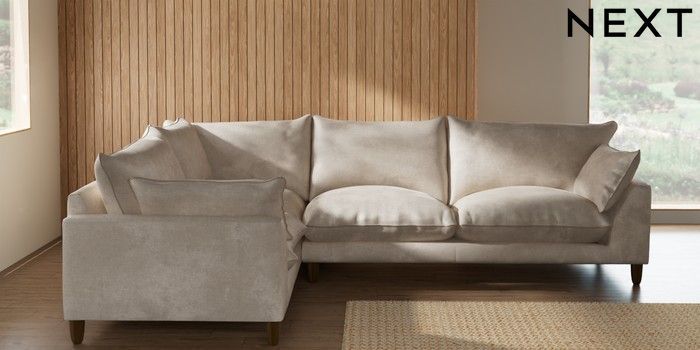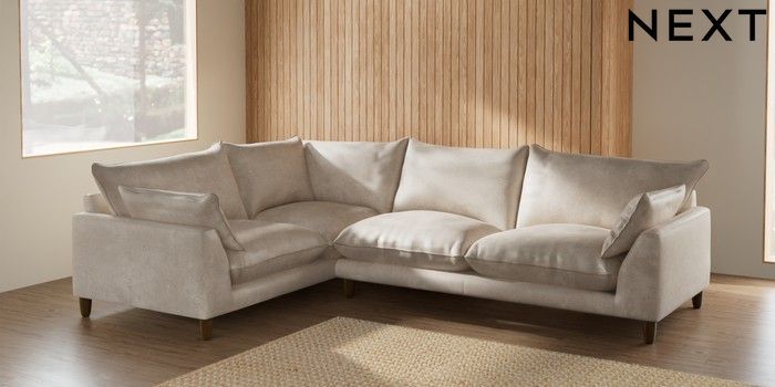 7.2.10 Noa Deep Relaxed Sit Large Corner Sofa - Left Hand Plush Chenille Oyster High Leg - Mid | Made Click here to use our website with more accessibility support, for example screen readers