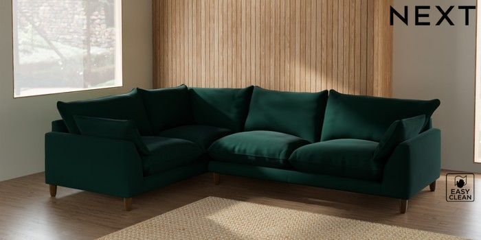 7.2.10 Noa Deep Relaxed Sit Large Corner Sofa - Left Hand Plush Velvet Easy Clean Bottle Green High Leg - Mid | Made Click here to use our website with more accessibility support, for example screen readers
