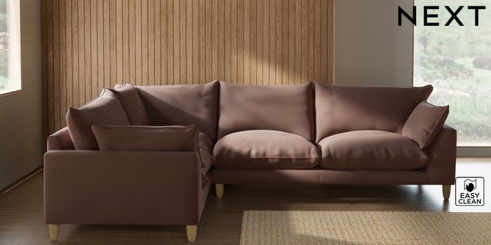 7.2.10 Noa Deep Relaxed Sit Large Corner Sofa - Left Hand Plush Velvet Easy Clean Mid Natural High Leg - Light | Made Click here to use our website with more accessibility support, for example screen readers