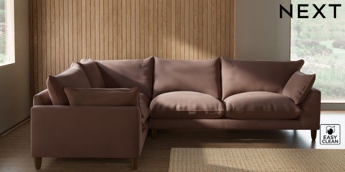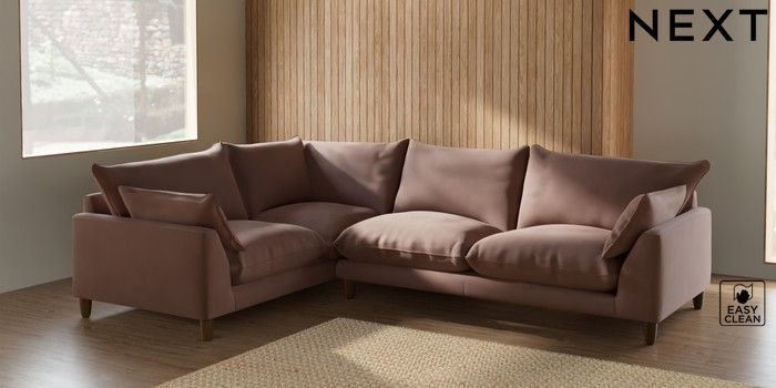 7.2.10 Noa Deep Relaxed Sit Large Corner Sofa - Left Hand Plush Velvet Easy Clean Mid Natural High Leg - Mid | Made Click here to use our website with more accessibility support, for example screen readers
