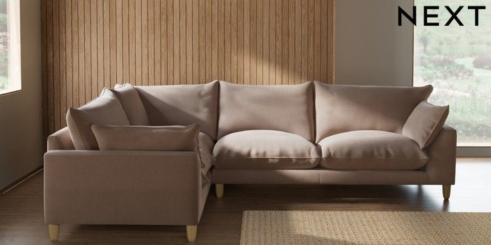 7.2.10 Noa Deep Relaxed Sit Large Corner Sofa - Left Hand Relaxed Linen Look Mid Natural High Leg - Light | Made Click here to use our website with more accessibility support, for example screen readers