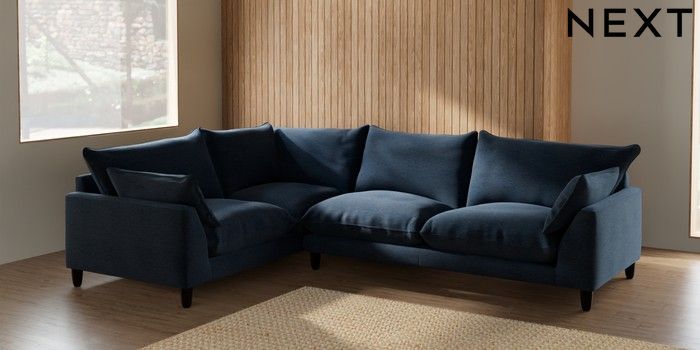 7.2.10 Noa Deep Relaxed Sit Large Corner Sofa - Left Hand Ripple Chenille Dark Blue High Leg - Dark | Made Click here to use our website with more accessibility support, for example screen readers