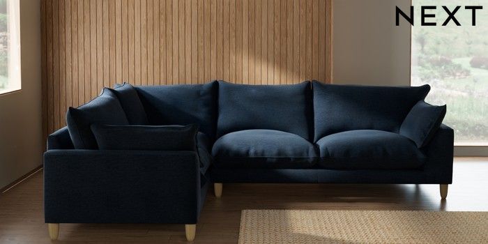 7.2.10 Noa Deep Relaxed Sit Large Corner Sofa - Left Hand Ripple Chenille Dark Blue High Leg - Light | Made Click here to use our website with more accessibility support, for example screen readers
