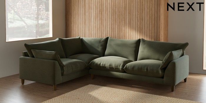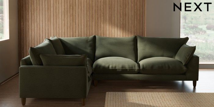 7.2.10 Noa Deep Relaxed Sit Large Corner Sofa - Left Hand Ripple Chenille Mid Moss Green High Leg - Mid | Made Click here to use our website with more accessibility support, for example screen readers