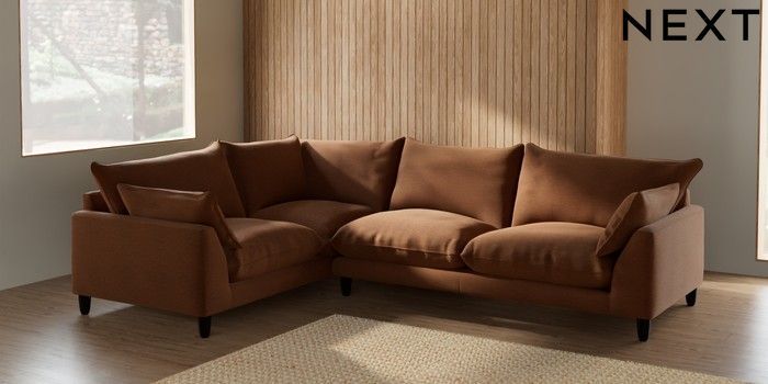 7.2.10 Noa Deep Relaxed Sit Large Corner Sofa - Left Hand Ripple Chenille Mid Rust Brown High Leg - Dark | Made Click here to use our website with more accessibility support, for example screen readers
