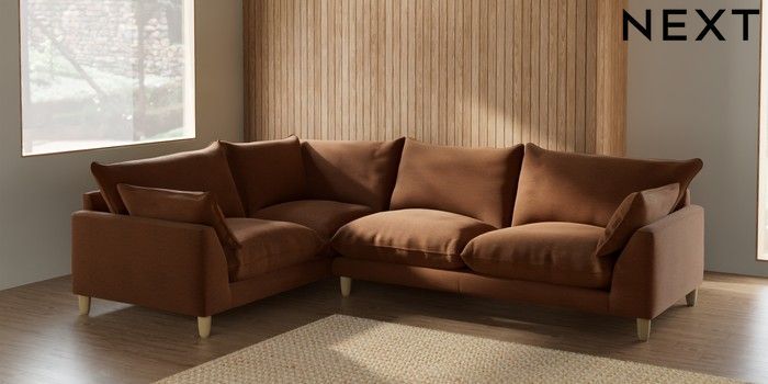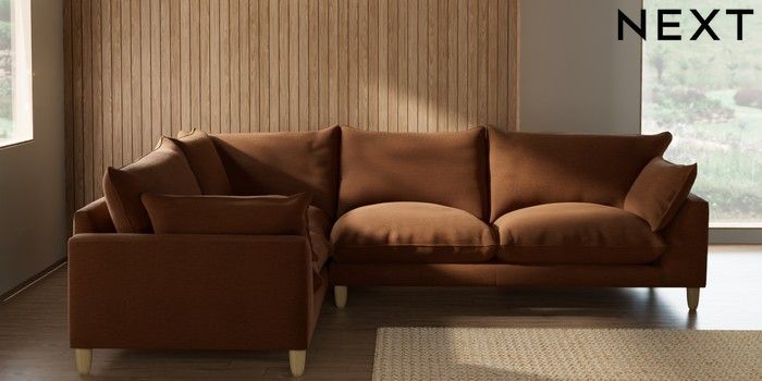 7.2.10 Noa Deep Relaxed Sit Large Corner Sofa - Left Hand Ripple Chenille Mid Rust Brown High Leg - Light | Made Click here to use our website with more accessibility support, for example screen readers