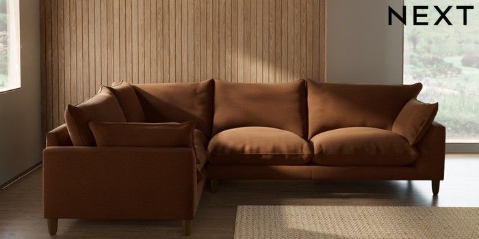 7.2.10 Noa Deep Relaxed Sit Large Corner Sofa - Left Hand Ripple Chenille Mid Rust Brown High Leg - Mid | Made Click here to use our website with more accessibility support, for example screen readers