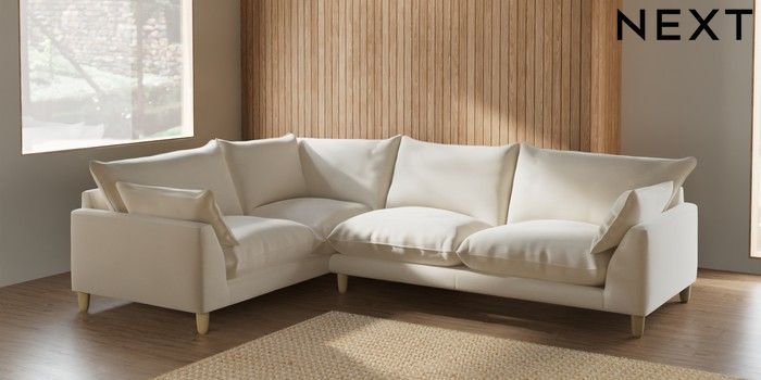 7.2.10 Noa Deep Relaxed Sit Large Corner Sofa - Left Hand Ripple Chenille Oyster High Leg - Light | Made Click here to use our website with more accessibility support, for example screen readers