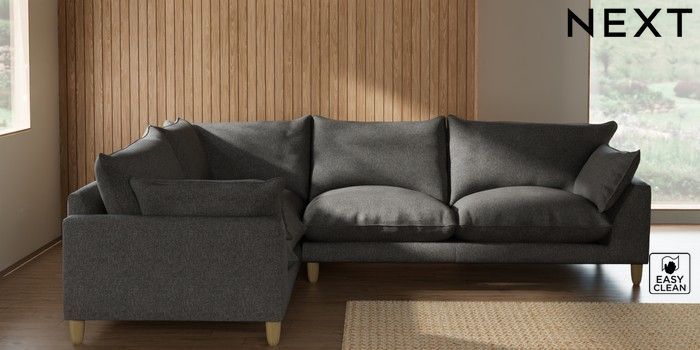 7.2.10 Noa Deep Relaxed Sit Large Corner Sofa - Left Hand Tweedy Blend Easy Clean Dark Grey High Leg - Light | Made Click here to use our website with more accessibility support, for example screen readers