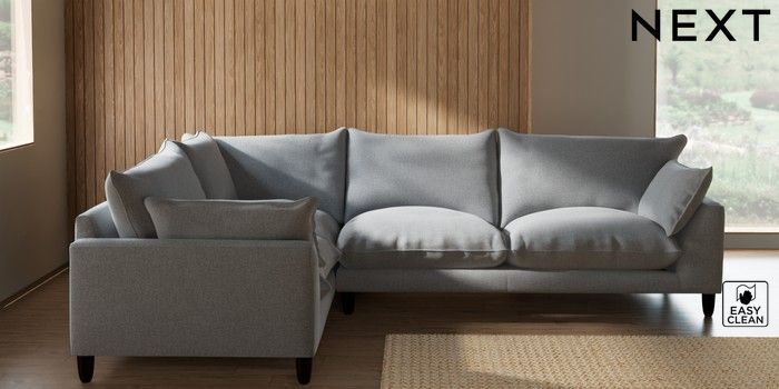 7.2.10 Noa Deep Relaxed Sit Large Corner Sofa - Left Hand Tweedy Blend Easy Clean Light Silver Grey High Leg - Dark | Made Click here to use our website with more accessibility support, for example screen readers