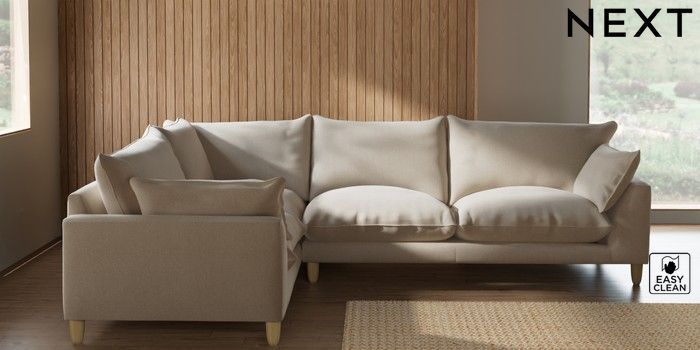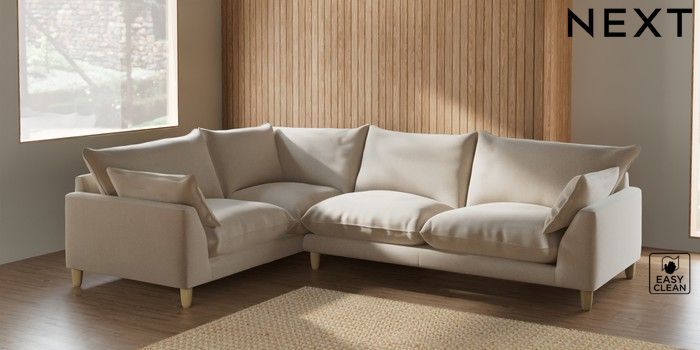 7.2.10 Noa Deep Relaxed Sit Large Corner Sofa - Left Hand Tweedy Blend Easy Clean Oyster High Leg - Light | Made Click here to use our website with more accessibility support, for example screen readers