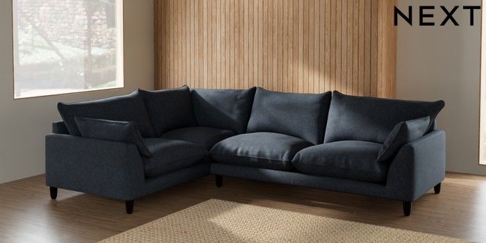 7.2.10 Noa Deep Relaxed Sit Large Corner Sofa - Left Hand Tweedy Chenille Navy Blue High Leg - Dark | Made Click here to use our website with more accessibility support, for example screen readers