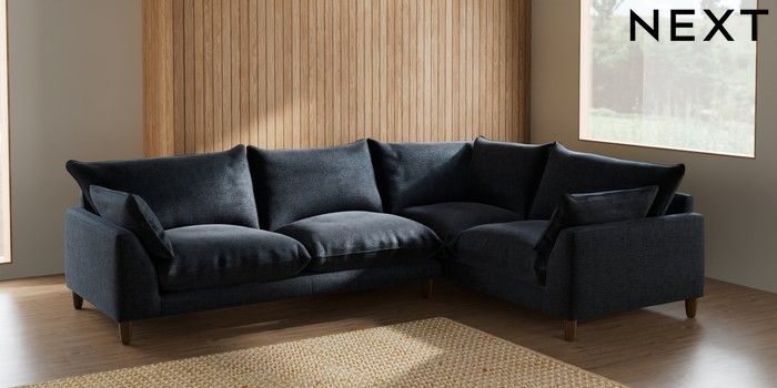 7.2.10 Noa Deep Relaxed Sit Large Corner Sofa - Right Hand Boucle Chenille Dark Slate Blue High Leg - Mid | Made Click here to use our website with more accessibility support, for example screen readers