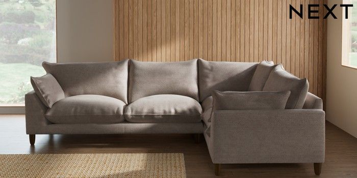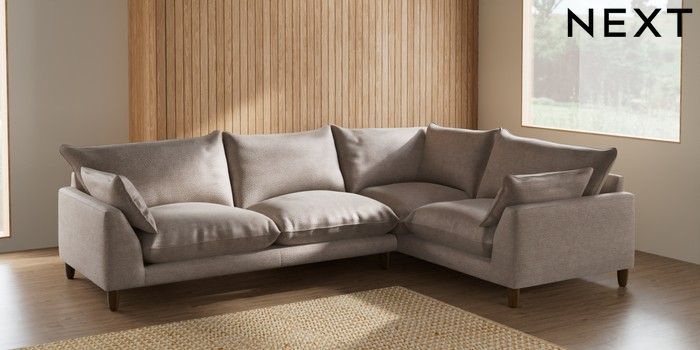7.2.10 Noa Deep Relaxed Sit Large Corner Sofa - Right Hand Boucle Chenille Light Natural High Leg - Mid | Made Click here to use our website with more accessibility support, for example screen readers