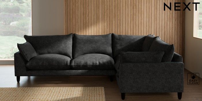 7.2.10 Noa Deep Relaxed Sit Large Corner Sofa - Right Hand Boucle Weave Easy Clean Charcoal Grey High Leg - Dark | Made Click here to use our website with more accessibility support, for example screen readers