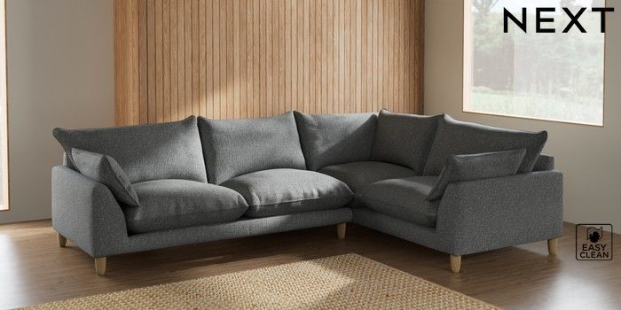 7.2.10 Noa Deep Relaxed Sit Large Corner Sofa - Right Hand Chunky Boucle Easy Clean Mid Grey High Leg - Light | Made Click here to use our website with more accessibility support, for example screen readers