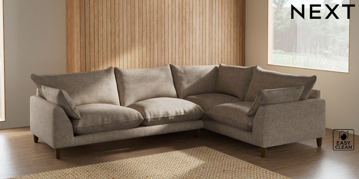 7.2.10 Noa Deep Relaxed Sit Large Corner Sofa - Right Hand Chunky Boucle Easy Clean Mid Natural High Leg - Mid | Made Click here to use our website with more accessibility support, for example screen readers