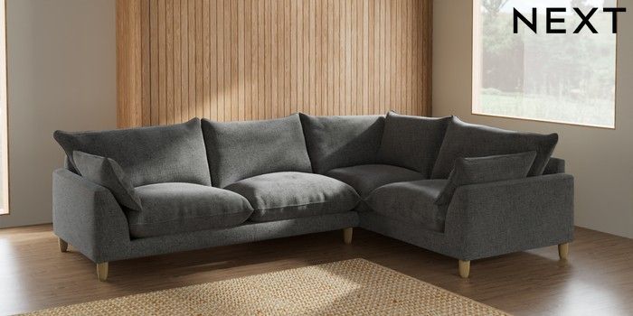 7.2.10 Noa Deep Relaxed Sit Large Corner Sofa - Right Hand Chunky Chenille Dark Grey High Leg - Light | Made Click here to use our website with more accessibility support, for example screen readers