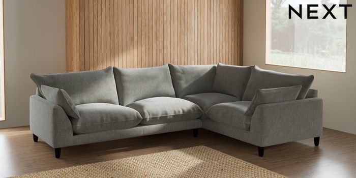 7.2.10 Noa Deep Relaxed Sit Large Corner Sofa - Right Hand Chunky Chenille Light Grey High Leg - Dark | Made Click here to use our website with more accessibility support, for example screen readers