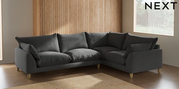 7.2.10 Noa Deep Relaxed Sit Large Corner Sofa - Right Hand Chunky Texture Dark Grey High Leg - Light | Made Click here to use our website with more accessibility support, for example screen readers