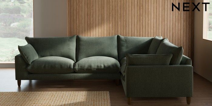 7.2.10 Noa Deep Relaxed Sit Large Corner Sofa - Right Hand Chunky Texture Mid Forest Green High Leg - Mid | Made Click here to use our website with more accessibility support, for example screen readers