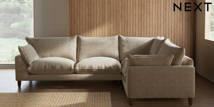 7.2.10 Noa Deep Relaxed Sit Large Corner Sofa - Right Hand Chunky Weave Cream High Leg - Mid | Made Click here to use our website with more accessibility support, for example screen readers