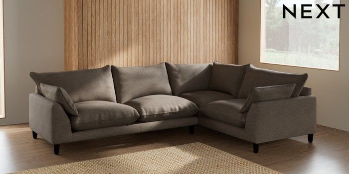 7.2.10 Noa Deep Relaxed Sit Large Corner Sofa - Right Hand Chunky Weave Dark Natural High Leg - Dark | Made Click here to use our website with more accessibility support, for example screen readers
