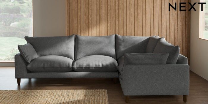 7.2.10 Noa Deep Relaxed Sit Large Corner Sofa - Right Hand Chunky Weave Mid Grey High Leg - Mid | Made Click here to use our website with more accessibility support, for example screen readers