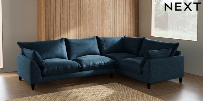 7.2.10 Noa Deep Relaxed Sit Large Corner Sofa - Right Hand Cotswold Chenille Dark Blue High Leg - Dark | Made Click here to use our website with more accessibility support, for example screen readers