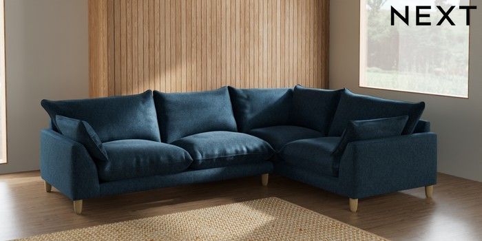 7.2.10 Noa Deep Relaxed Sit Large Corner Sofa - Right Hand Cotswold Chenille Dark Blue High Leg - Light | Made Click here to use our website with more accessibility support, for example screen readers