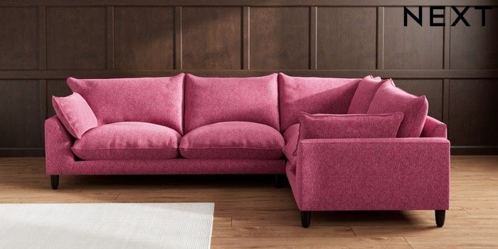 7.2.10 Noa Deep Relaxed Sit Large Corner Sofa - Right Hand Cotswold Chenille Dark Raspberry Pink High Leg - Dark | Made Click here to use our website with more accessibility support, for example screen readers