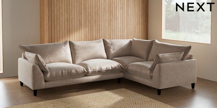7.2.10 Noa Deep Relaxed Sit Large Corner Sofa - Right Hand Cotswold Chenille Light Natural High Leg - Dark | Made Click here to use our website with more accessibility support, for example screen readers