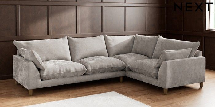 7.2.10 Noa Deep Relaxed Sit Large Corner Sofa - Right Hand Distressed Velour French Grey High Leg - Mid | Made Click here to use our website with more accessibility support, for example screen readers