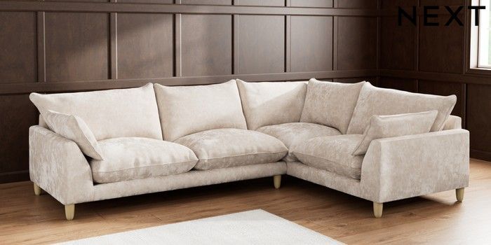 7.2.10 Noa Deep Relaxed Sit Large Corner Sofa - Right Hand Distressed Velour Mid Natural High Leg - Light | Made Click here to use our website with more accessibility support, for example screen readers