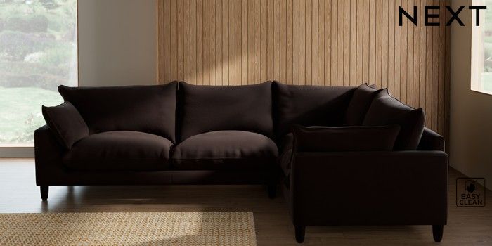 7.2.10 Noa Deep Relaxed Sit Large Corner Sofa - Right Hand Fine Chenille Easy Clean Chocolate Brown High Leg - Dark | Made Click here to use our website with more accessibility support, for example screen readers