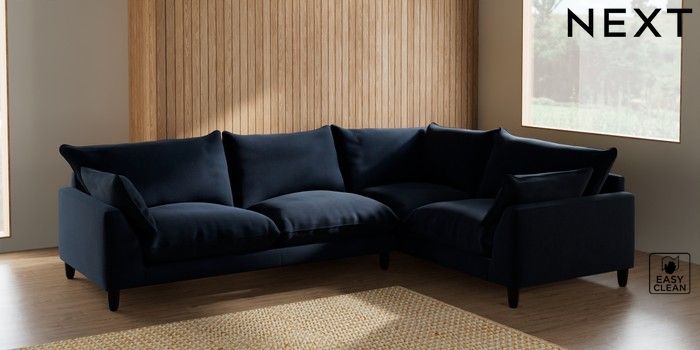7.2.10 Noa Deep Relaxed Sit Large Corner Sofa - Right Hand Fine Chenille Easy Clean Dark Navy Blue High Leg - Dark | Made Click here to use our website with more accessibility support, for example screen readers