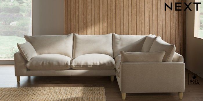 7.2.10 Noa Deep Relaxed Sit Large Corner Sofa - Right Hand Fine Chenille Easy Clean Oyster High Leg - Light | Made Click here to use our website with more accessibility support, for example screen readers