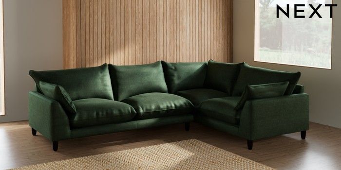 7.2.10 Noa Deep Relaxed Sit Large Corner Sofa - Right Hand Luxe Chenille Dark Green High Leg - Dark | Made Click here to use our website with more accessibility support, for example screen readers