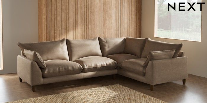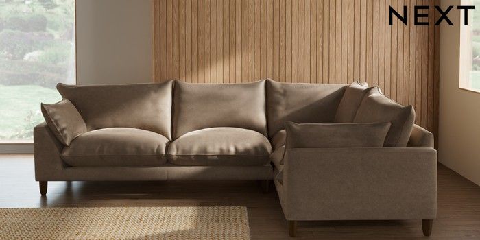 7.2.10 Noa Deep Relaxed Sit Large Corner Sofa - Right Hand Luxe Chenille Mid Camel Beige High Leg - Mid | Made Click here to use our website with more accessibility support, for example screen readers