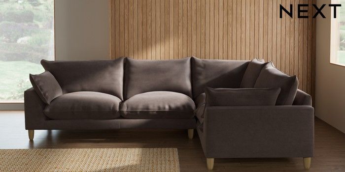 7.2.10 Noa Deep Relaxed Sit Large Corner Sofa - Right Hand Luxe Chenille Mink Brown High Leg - Light | Made Click here to use our website with more accessibility support, for example screen readers
