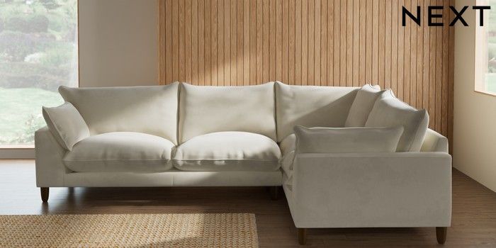 7.2.10 Noa Deep Relaxed Sit Large Corner Sofa - Right Hand Luxe Chenille Oyster High Leg - Mid | Made Click here to use our website with more accessibility support, for example screen readers