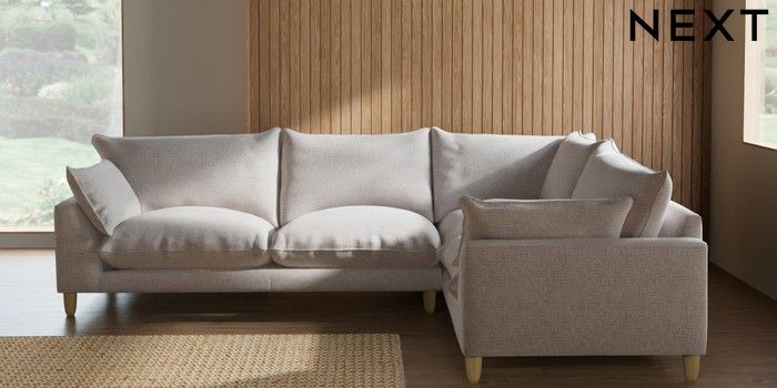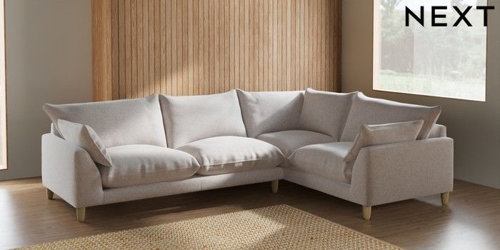 7.2.10 Noa Deep Relaxed Sit Large Corner Sofa - Right Hand Multi Weave Oyster High Leg - Light | Made Click here to use our website with more accessibility support, for example screen readers