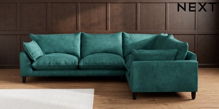 7.2.10 Noa Deep Relaxed Sit Large Corner Sofa - Right Hand Plush Chenille Dark Teal Green High Leg - Dark | Made Click here to use our website with more accessibility support, for example screen readers