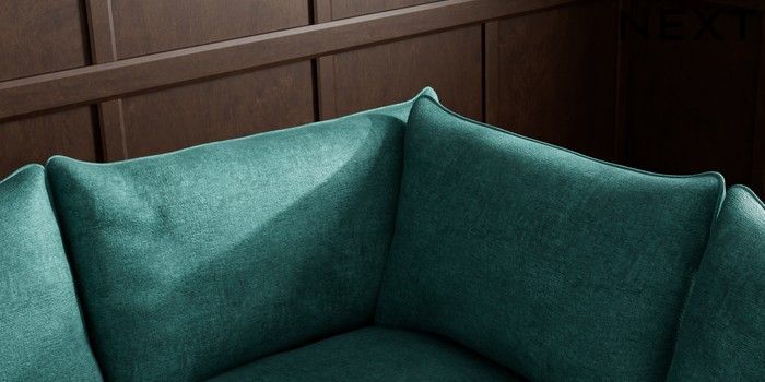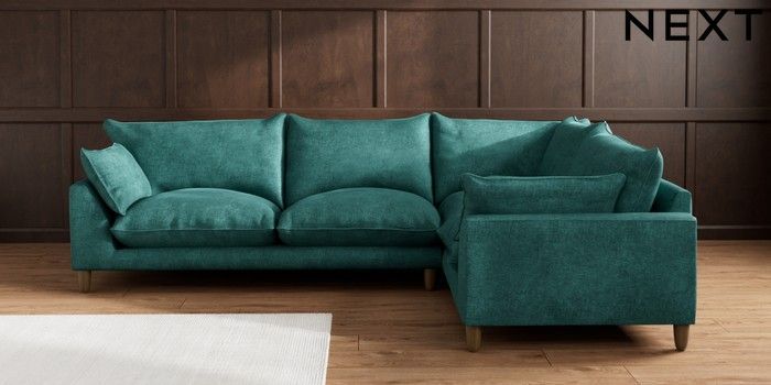 7.2.10 Noa Deep Relaxed Sit Large Corner Sofa - Right Hand Plush Chenille Dark Teal Green High Leg - Mid | Made Click here to use our website with more accessibility support, for example screen readers