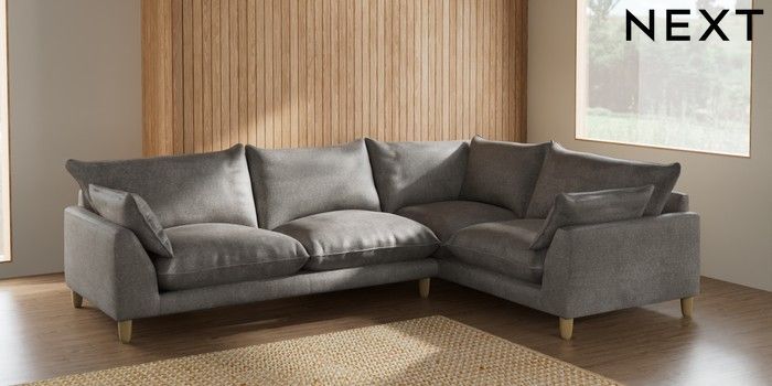 7.2.10 Noa Deep Relaxed Sit Large Corner Sofa - Right Hand Plush Chenille Light Grey High Leg - Light | Made Click here to use our website with more accessibility support, for example screen readers